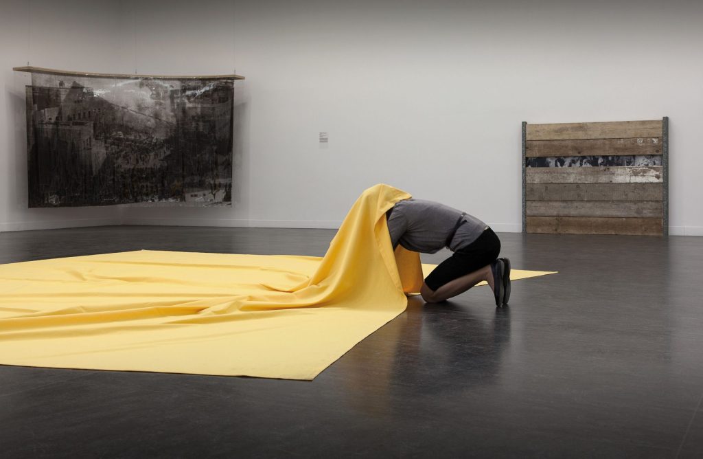 Den Ansatz einer Dekonstruktion von Täterbildern verfolgte in den 1990ern mit der Serie „Historical Photographs“ auch der wenig bekannte Künstler-Überlebende Gustav Metzger, Schöpfer der „Destruktionskunst“: Metzger verdeckte berühmt gewordene NS-Fotografien hinter Verschalungen aus Holzbrettern, Stahlplatten oder Tüchern, unter die man kriechen musste.