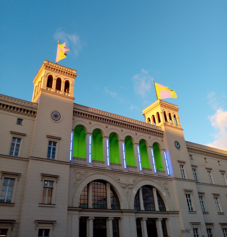 Die letzte Ausstellung führte uns in die Nationalgalerie der Gegenwart, den Hamburger Bahnhof. Die dortige Haupthalle wartet mit der opulenten Installation „embrace“ von Klára Hosnedlová auf, die aus riesigen Filzgebilden, amorphen Plastiken, gestickten Fotografien, Stahlplatten, Beton (als Sinnbilder des Ostblocks, heißt es) und künstlichen „Durchbrüchen der Natur“ (Plastikpfützen) besteht.