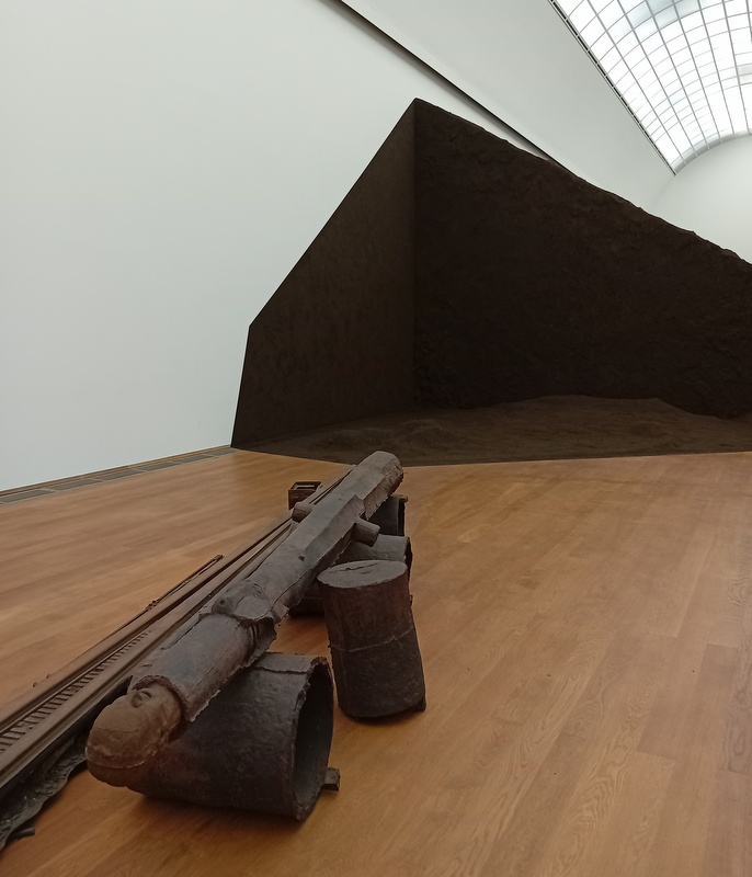 In einem lichten Saal lagert Delcy Morelos´ tonnenschweres, duftendes Gebirge „Madre“ aus Erde, Zimt, Honig und Samen: ein Riesenhaufen. Er soll die Verbindung von „Mütterlichkeit“ und „Erde“ symbolisieren und hinterließ ob dieser Kombination bei mir einen eher schalen Geschmack, derweil Buchweizen-Gerüche die Nase reizten. Ist die Frage erlaubt: Wer räumt das wieder weg?