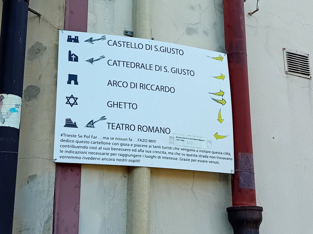 Der älteste jüdische Friedhof, hoch oben auf dem Colle San Giusto, wo ein römisches Forum zu bestaunen ist, war bereits 1909 von der Stadt konfisziert und in einen Park umgewandelt worden. Der heutige, seit dem 19.Jahrhundert bestehende jüdische Friedhof liegt in der Via della pace. Auf dem Colle (Hügel) Stelle richteten die „Schwarzhemden“ (italienische Faschist*innen) 1926 den „Parco della Rimembranza“ ein, eine wüst wirkende Ansammlung von Gedenktafeln für im Krieg gefallene Söhne des Landes. Mittlerweile bezieht der Ort aber auch Opfer der Nazis ein.