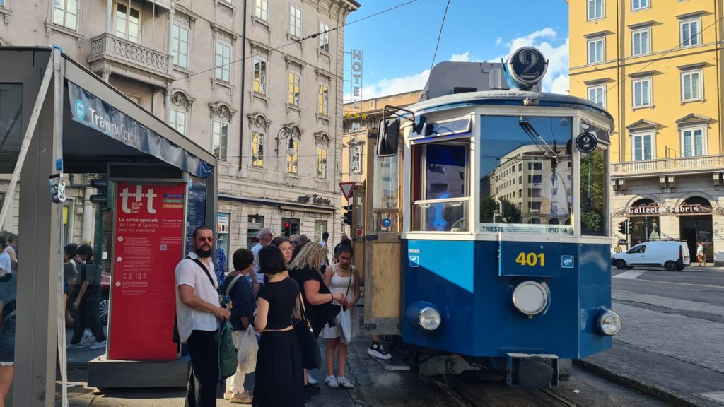 Von der Piazza aus rumpelt eine alte Zahnradbahn hinauf in den kleinen Ort Opicina. Die Bahn ist erst seit wenigen Jahren wieder in Betrieb, die obendrein sehr kostengünstige Fahrt sollte man sich nicht entgehen lassen. Wir genossen die knarzende Tour auf den Berg zum „Obelisken“ mit herrlichem Ausblick auf Triest und die Küste.