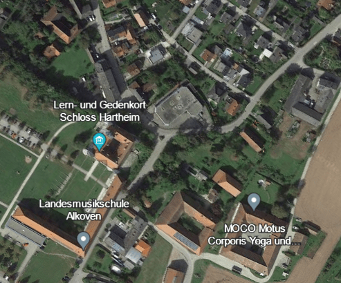 Doch wir wollten ja eigentlich nach Westen: nach Hartheim. Das schöne Linz liegt, ich sagte es bereits im letzten Beitrag, mittig zwischen zwei dunklen Orten. Jeder der beiden darf für sich in den Sparten „Tödlichkeit“ und „Laufzeit“ Alleinstellungsmerkmale beanspruchen: Schloss Hartheim in der Gemeinde Alkoven führte mit über 18.000 Mordopfern die Top-6 der zentralen „Euthanasie“-Anstalten in der „Hartheim-Statistik“ an (Gesamtopferzahl ca. 30.000). Die Konkurrenten waren bekanntlich: Grafeneck, Brandenburg/Havel, Hadamar, Pirna/Sonnenstein und Bernburg/Saale. Wer war eigentlich Platz 2? Gern mal recherchieren!