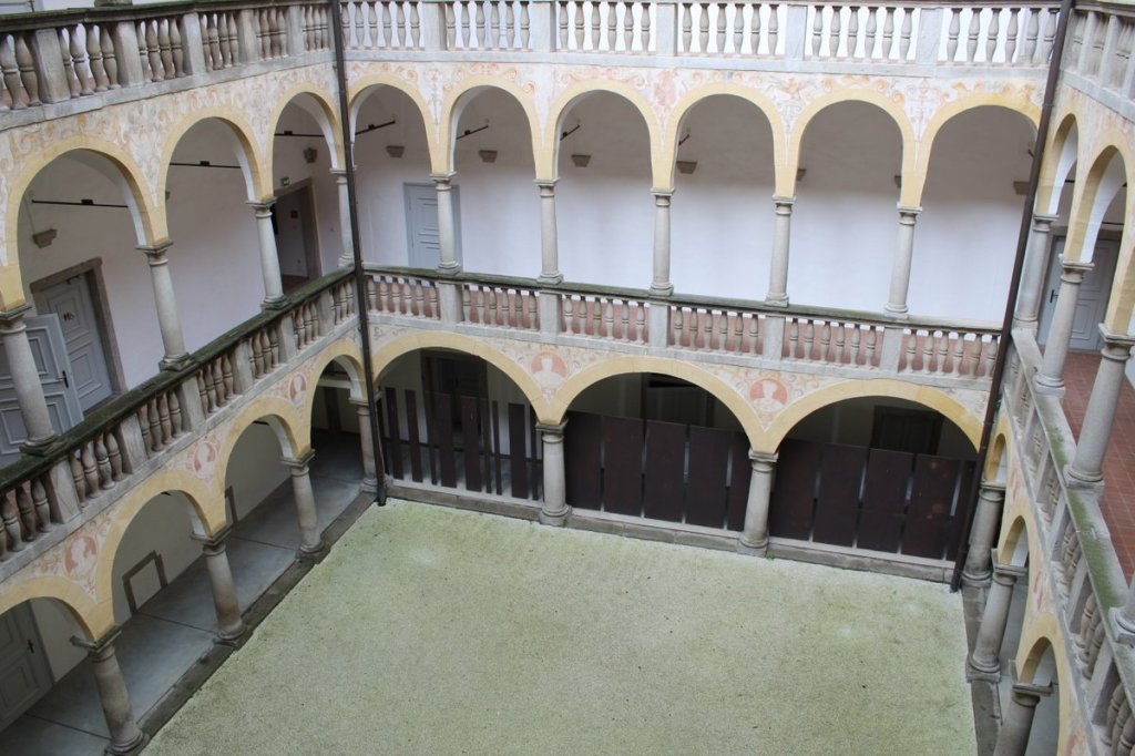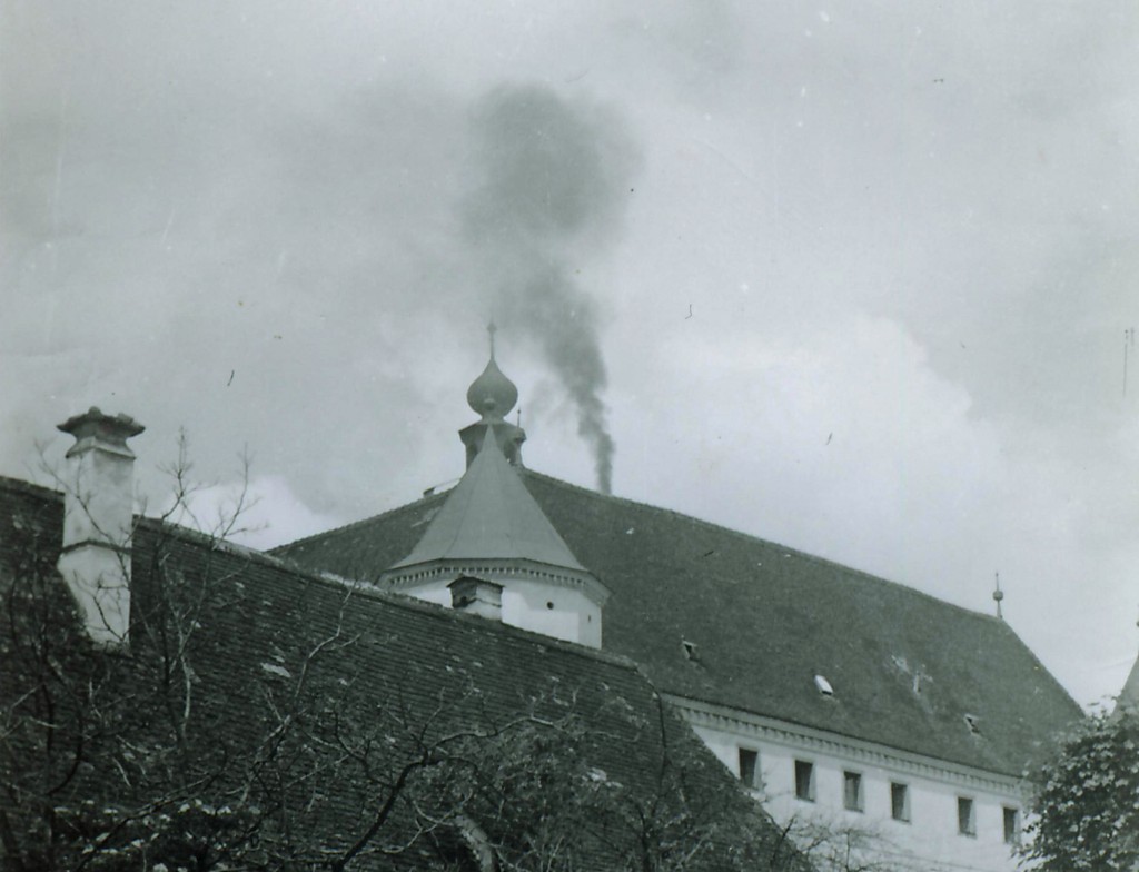 Im Schlosshof war es enorm zugig, die Türen schepperten vom Wind. Auf meine Nachfrage bestätigte die Mitarbeiterin des „Lernorts“, dass es in Alkoven „allgemein sehr windig“ sei. Dies mag beigetragen haben zur weiten Ausbreitung des infernalischen Gestanks, der bis Ende 1944 vom Schloss ausging. In dem konnten die „T4“-Mitarbeiter*innen ihre Zimmer (2. OG) „nur mit Taschentuch vor der Nase“ verlassen. Es ist mir schleierhaft, wie Dr. Georg Renno, zweiter Tötungsarzt und meistens vor Ort, hier zeitweilig seine Familie nebst Kindern unterbringen und abendlich, wie berichtet wird, mit seiner Querflöte in den Rauch hineinmusizieren konnte.