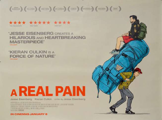 In einer Schlüsselszene des Films A REAL PAIN (2024) ruft ein älterer Mann dem aufgebrachten Jüngeren im Zug hinterher: „Dort hinten werden Sie bestimmt auch nicht viel mehr Leid finden!“ Benji Kaplan, der Aufgewühlte, spürt das Bedürfnis, sich wegzusetzen, weg aus der 1. Klasse, in der seine Gruppe fährt. Diese buchte eine Bildungsreise durch Polen, Heritage Tours, eine von zahlreichen solcher Programme, in denen gemeinsam nach jüdischem Erbe gesucht wird.